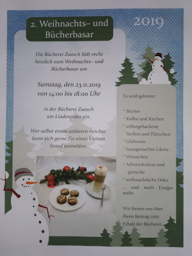 Auch in diesem Jahr findet unser Weihnachts- und Bücherbasar statt.